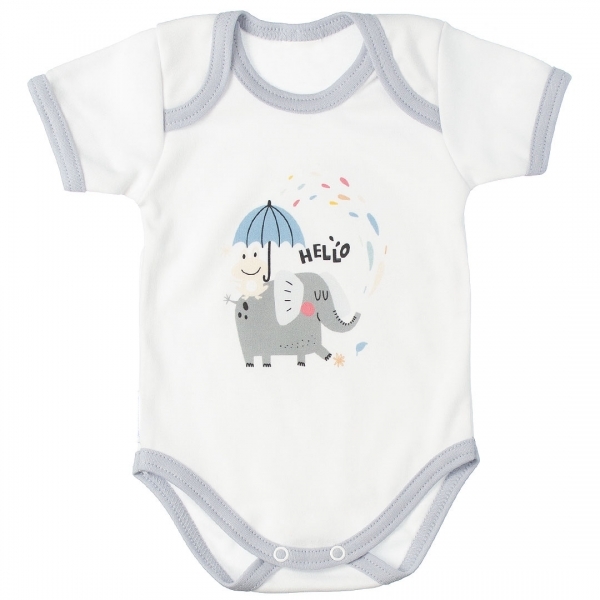 MBaby Bavlněné body s krátkým rukávem, Slůně Hello, bílo/šedé, vel. 80; 80 (9-12m)