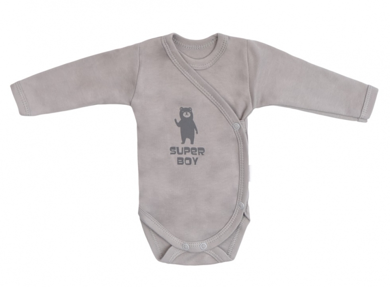 Mamatti Kojenecké body dlouhý rukáv, zapínání bokem, Bear - šedá; 50 (0-1m)