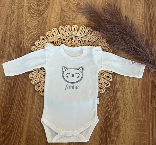 Kojenecké body, dl. rukáv Mamatti, zap. u krku, Puntík - bílé s potiskem