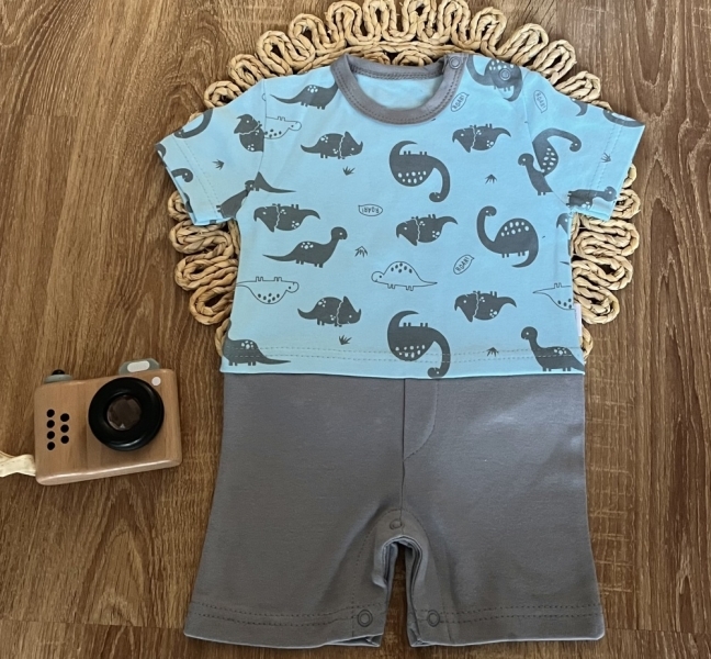 Body s nohavičkami Mamatti, Dino park - modrá s potiskem/šedá, vel. 68; 68 (3-6m)