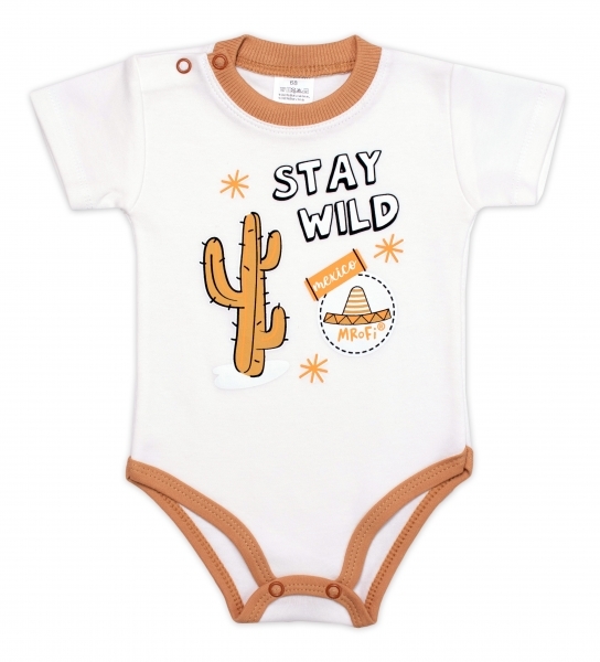 Body kr. rukáv, bavlna, zapínání u krku Mexiko Mrofi, ecru; 68 (3-6m)