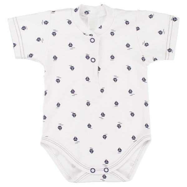 Body polo krátký rukáv, bavlna, MBaby, Lodičky, bílé/granát; 56 (1-2m)