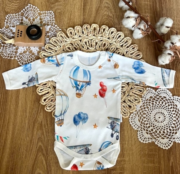 Bodýčka ve vel. 56, 62, mají zapínání bokem pro snadnější převlékání, vel. 68, 74, 80 jsou se zapínáním u krku.
