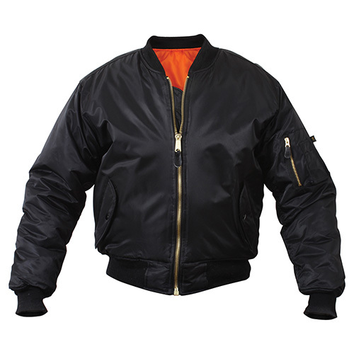 Klasická nepromokavá pilotní bunda typu MA-1 (bomber). Bunda je zateplená a je tak vhodná do chladnějšího počasí. Lze ji obrátit naruby, signální oranžovou podšívkou navrch.