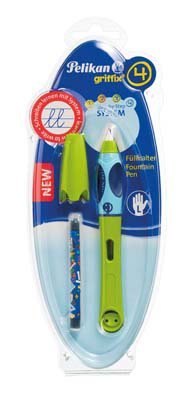 Griffix 4, ergonomicky tvarované držení, indikátor správného držení, okénko umožňující kontrolu množství spotřebovaného inkoustu, na blistru s bombičkou číst celé