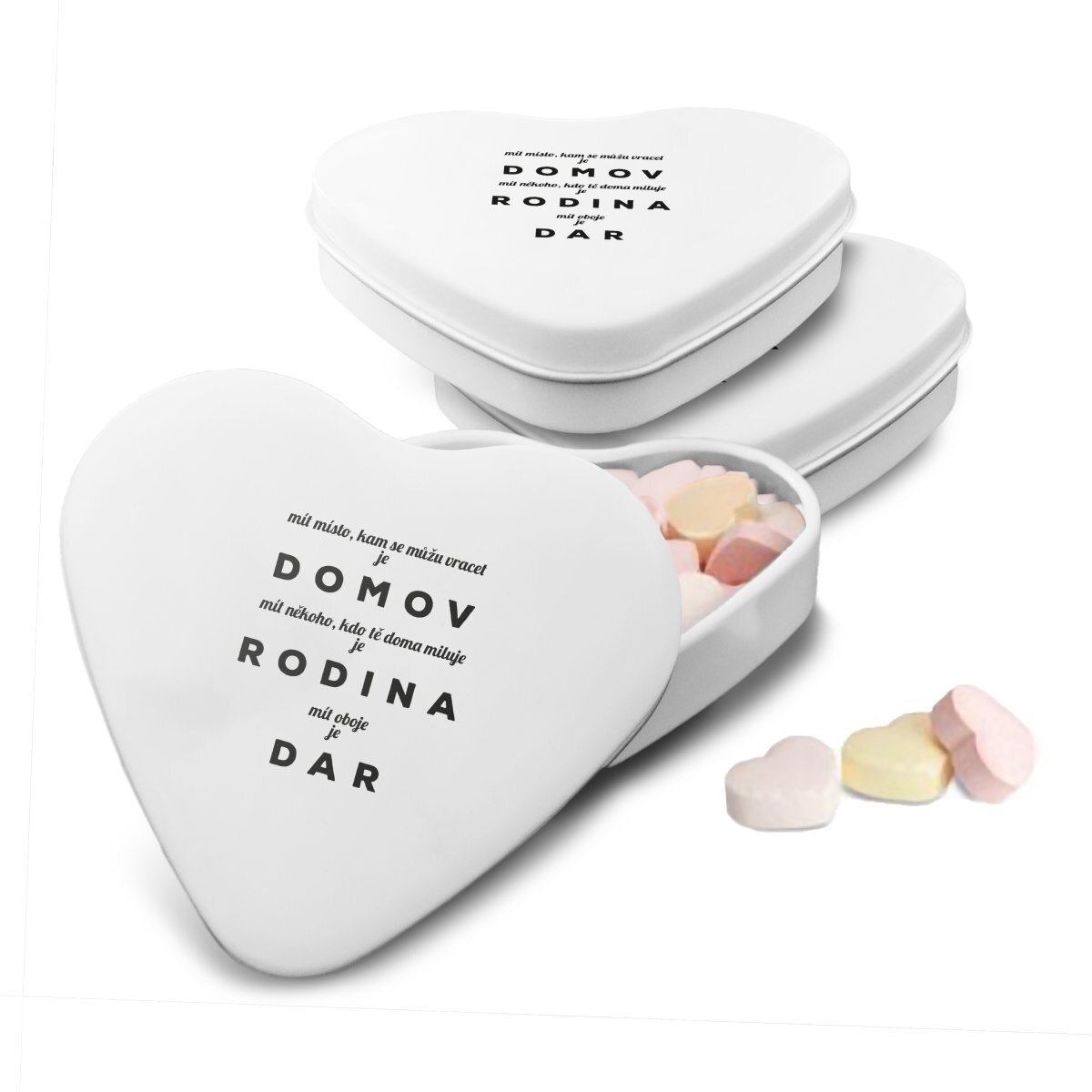 Bonbónky v srdíčkové krabičce s originálním motivemBonbónky jsou malým dárečkem pro potěšení a je vhodné darovat je jako doplněk s jiným dárkem z našeho e-shopu nebo v dárkové krabičce s ostatními produkty.Udělejte radost malým dárkem do kapsy, sladkými bonbóny v kovové krabičce ve tvaru srdce. Každého mlsouna potěší "Lipo" bonbónky v krabičce, kterou může dále používat a poslouží mu jako milá vzpomínka. V krabičce jsou namixované různé příchutě bonbónků ve tvaru srdce. Originální potisk dodá bonbónkům nádech výjimečnosti.Rozměr: 70 x 65 x 15 mmHmotnost: 40g