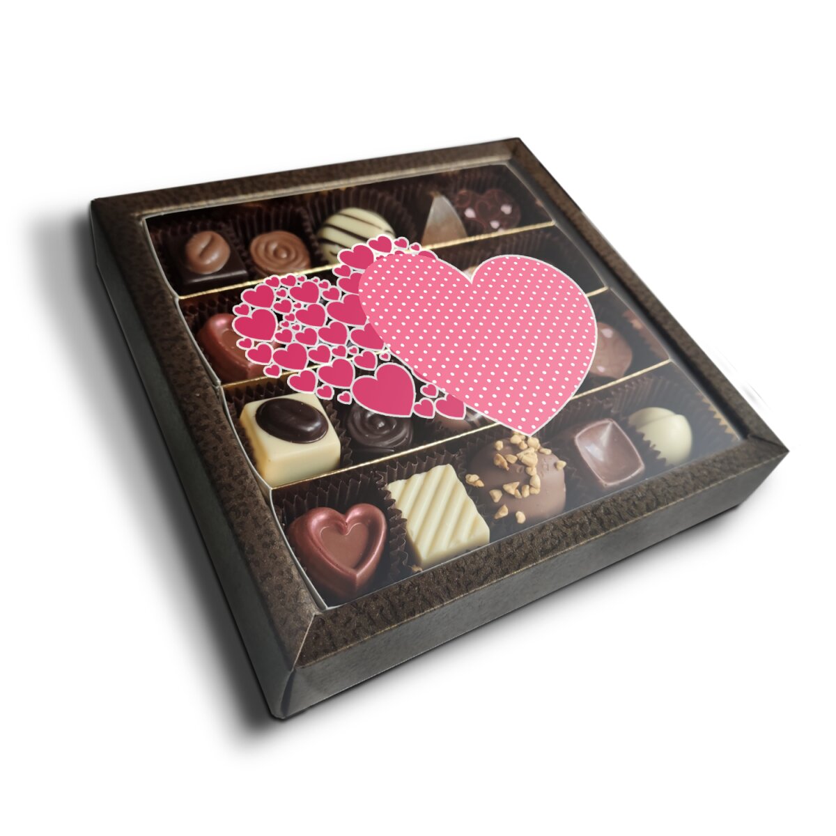 Krabička s pralinkami a lanýži s originálním motivem.Pralinky jsou ideálním dárkem pro milovníky luxusu a požitků. Tento zážitek z mlsání je navýšen o originální potisk, který vystihuje osobní věnování. Pralinky v balení jsou seskládané z mléčné, hořké a bílé čokolády s různými příchutěmi. Pralinky a jsou vyrobeny poctivou českou výrobou z té nejčistší čokolády bez lepku a palmového oleje. Darujte sladkou radost :-)3 varianty: 10, 20 a 28 kusů