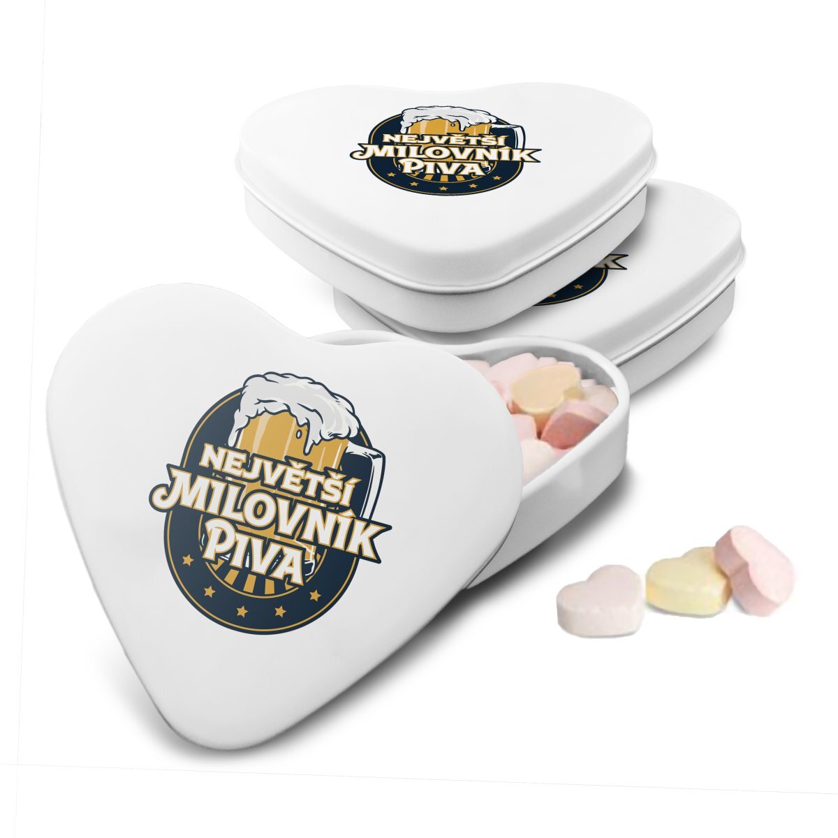 Bonbónky v srdíčkové krabičce s originálním motivemBonbónky jsou malým dárečkem pro potěšení a je vhodné darovat je jako doplněk s jiným dárkem z našeho e-shopu nebo v dárkové krabičce s ostatními produkty.Udělejte radost malým dárkem do kapsy, sladkými bonbóny v kovové krabičce ve tvaru srdce. Každého mlsouna potěší "Lipo" bonbónky v krabičce, kterou může dále používat a poslouží mu jako milá vzpomínka. V krabičce jsou namixované různé příchutě bonbónků ve tvaru srdce. Originální potisk dodá bonbónkům nádech výjimečnosti.Rozměr: 70 x 65 x 15 mmHmotnost: 40g