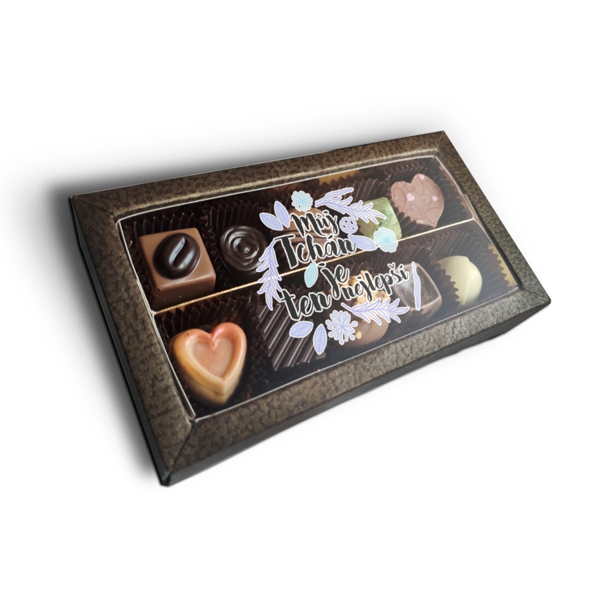 Krabička s pralinkami a lanýži s originálním motivem.Pralinky jsou ideálním dárkem pro milovníky luxusu a požitků. Tento zážitek z mlsání je navýšen o originální potisk, který vystihuje osobní věnování. Pralinky v balení jsou seskládané z mléčné, hořké a bílé čokolády s různými příchutěmi. Pralinky a jsou vyrobeny poctivou českou výrobou z té nejčistší čokolády bez lepku a palmového oleje. Darujte sladkou radost :-)3 varianty: 10, 20 a 28 kusů