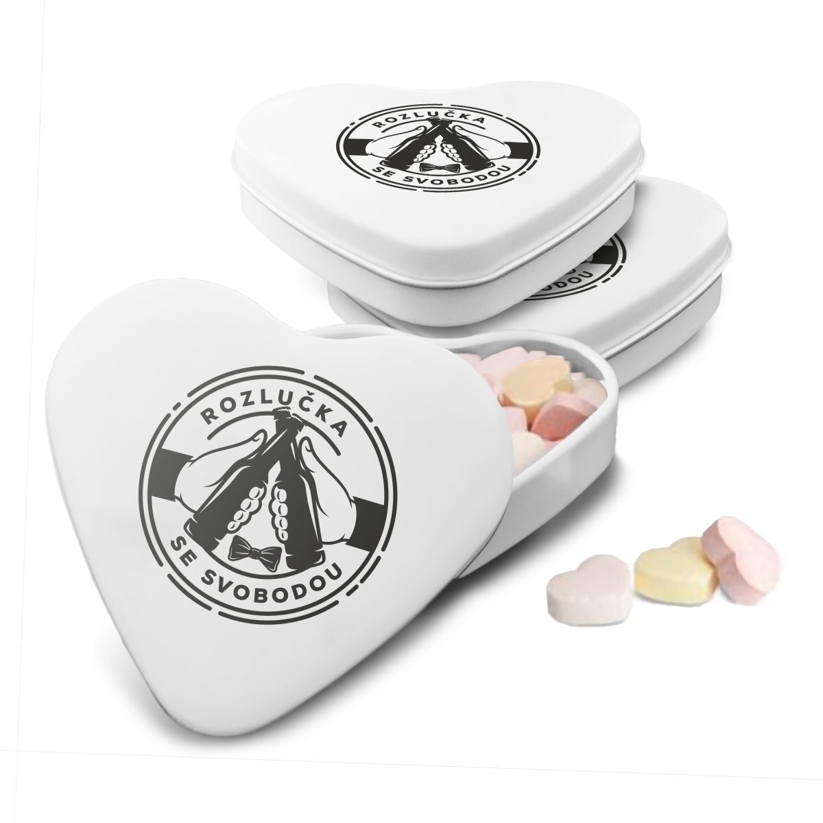 Bonbónky v srdíčkové krabičce s originálním motivemBonbónky jsou malým dárečkem pro potěšení a je vhodné darovat je jako doplněk s jiným dárkem z našeho e-shopu nebo v dárkové krabičce s ostatními produkty.Udělejte radost malým dárkem do kapsy, sladkými bonbóny v kovové krabičce ve tvaru srdce. Každého mlsouna potěší "Lipo" bonbónky v krabičce, kterou může dále používat a poslouží mu jako milá vzpomínka. V krabičce jsou namixované různé příchutě bonbónků ve tvaru srdce. Originální potisk dodá bonbónkům nádech výjimečnosti.Rozměr: 70 x 65 x 15 mmHmotnost: 40g