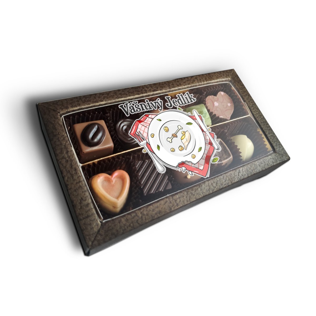 Krabička s pralinkami a lanýži s originálním motivem.Pralinky jsou ideálním dárkem pro milovníky luxusu a požitků. Tento zážitek z mlsání je navýšen o originální potisk, který vystihuje osobní věnování. Pralinky v balení jsou seskládané z mléčné, hořké a bílé čokolády s různými příchutěmi. Pralinky a jsou vyrobeny poctivou českou výrobou z té nejčistší čokolády bez lepku a palmového oleje. Darujte sladkou radost :-)3 varianty: 10, 20 a 28 kusů