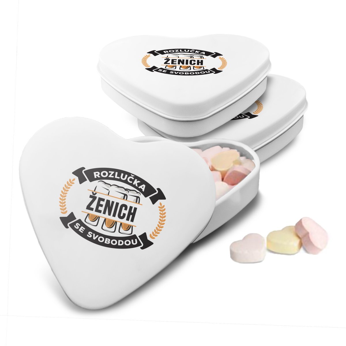 Bonbónky v srdíčkové krabičce s originálním motivemBonbónky jsou malým dárečkem pro potěšení a je vhodné darovat je jako doplněk s jiným dárkem z našeho e-shopu nebo v dárkové krabičce s ostatními produkty.Udělejte radost malým dárkem do kapsy, sladkými bonbóny v kovové krabičce ve tvaru srdce. Každého mlsouna potěší "Lipo" bonbónky v krabičce, kterou může dále používat a poslouží mu jako milá vzpomínka. V krabičce jsou namixované různé příchutě bonbónků ve tvaru srdce. Originální potisk dodá bonbónkům nádech výjimečnosti.Rozměr: 70 x 65 x 15 mmHmotnost: 40g
