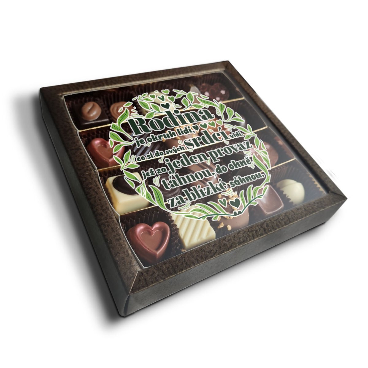 Krabička s pralinkami a lanýži s originálním motivem.Pralinky jsou ideálním dárkem pro milovníky luxusu a požitků. Tento zážitek z mlsání je navýšen o originální potisk, který vystihuje osobní věnování. Pralinky v balení jsou seskládané z mléčné, hořké a bílé čokolády s různými příchutěmi. Pralinky a jsou vyrobeny poctivou českou výrobou z té nejčistší čokolády bez lepku a palmového oleje. Darujte sladkou radost :-)3 varianty: 10, 20 a 28 kusů