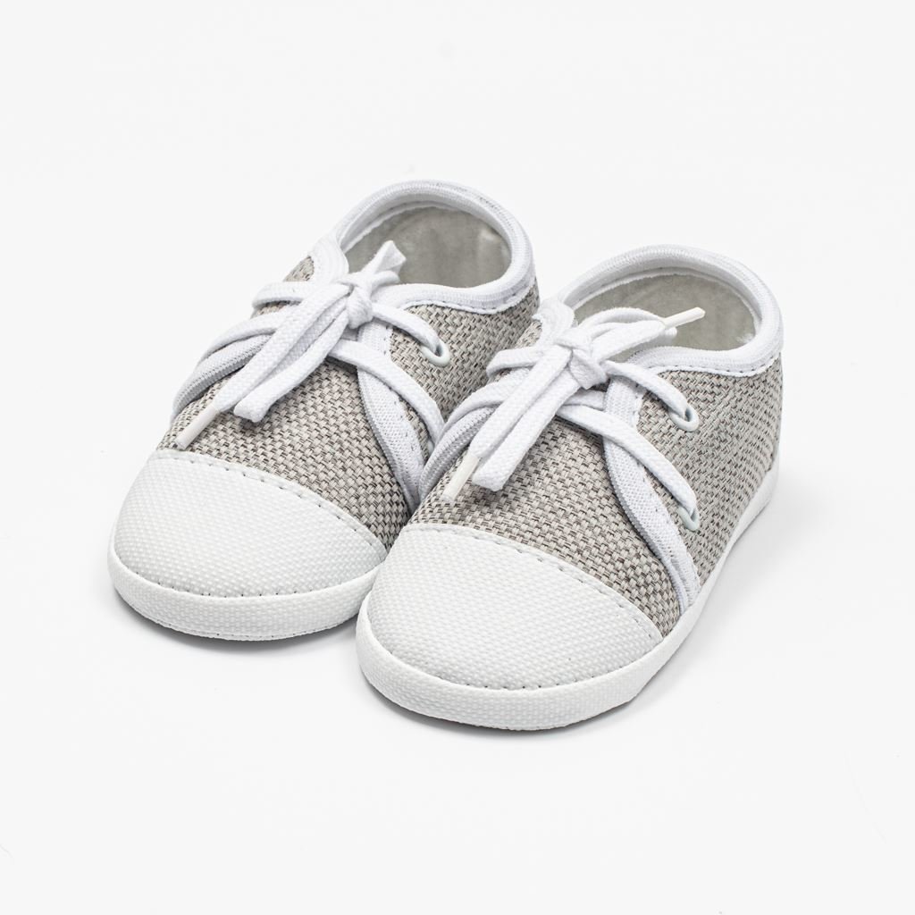 Kojenecké capáčky New Baby pro miminka. Krásné botičky jsou ve stylu tenisek s moderním vzhledem na zavazování na tkaničky. Capáčky přiléhají k nožičce a mají široký vnitřek, což umožňuje volný pohyb prstů a svalů. Výrobek není určen k chůzi. Jsou velmi lehké s tenkou syntetickou podrážkou. Složení:jeans-100% polyester. Podrážka: syntetický materiál PVC bez BPA. Délka vnitřní stélky 11 cm. Určeno pro děti 3-6 měsíců. Dodáváné v praktické krabičce. Upozornění: pod textilní vložkou se někdy nachází papírová vložka, která drží tvar capáčky. Před prvním použitím odstraňte tuto papírovou vložku.