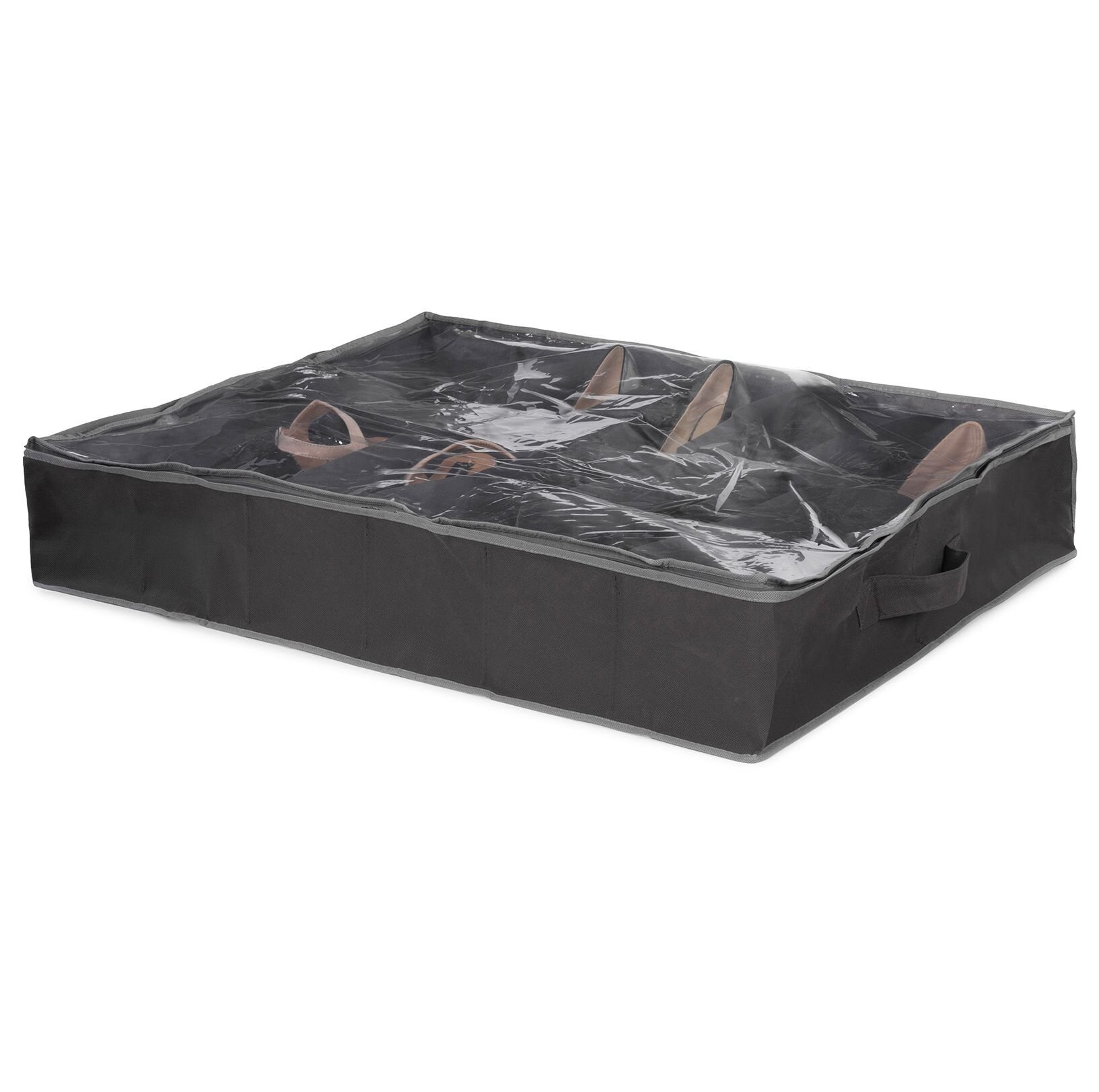 Ideální pro uskladnění bot mimo jejich sezónu Organizér na boty má dvanáct přihrádek pro 12 párů bot. Každý pár je uložen jednotlivě v oddělené sekci, boty se tedy vzájemně nedotýkají. Textilní organizér je vybaven průhledným víkem, které se dá pevně uzavřít na zip. Vždy přesně vidíte, kde se která bota nachází a pokud máte těchto organizérů více, vždy přesně víte, kde je konkrétní pár bot. Organizér na boty Compactor nabízí efektivní a jednoduché řešení jak skladovat právě nenošené páry bot. Vaše boty budou uloženy přehledně a bezpečně. Hlavní výhody Oddělené přihrádky pro uložení 12 párů bot. Transparentní kryt zajišťuje dokonalý přehled. Flexibilní oddělovače pro různé druhy obuvi. Uzavíratelný pro ochranu před nečistotami. Vhodný k zasunutí pod postel či skříň. Parametry Šířka : 76 cm Hloubka : 60 cm Výška : 15 cm Materiál : netkaná textilie + PEVA kryt