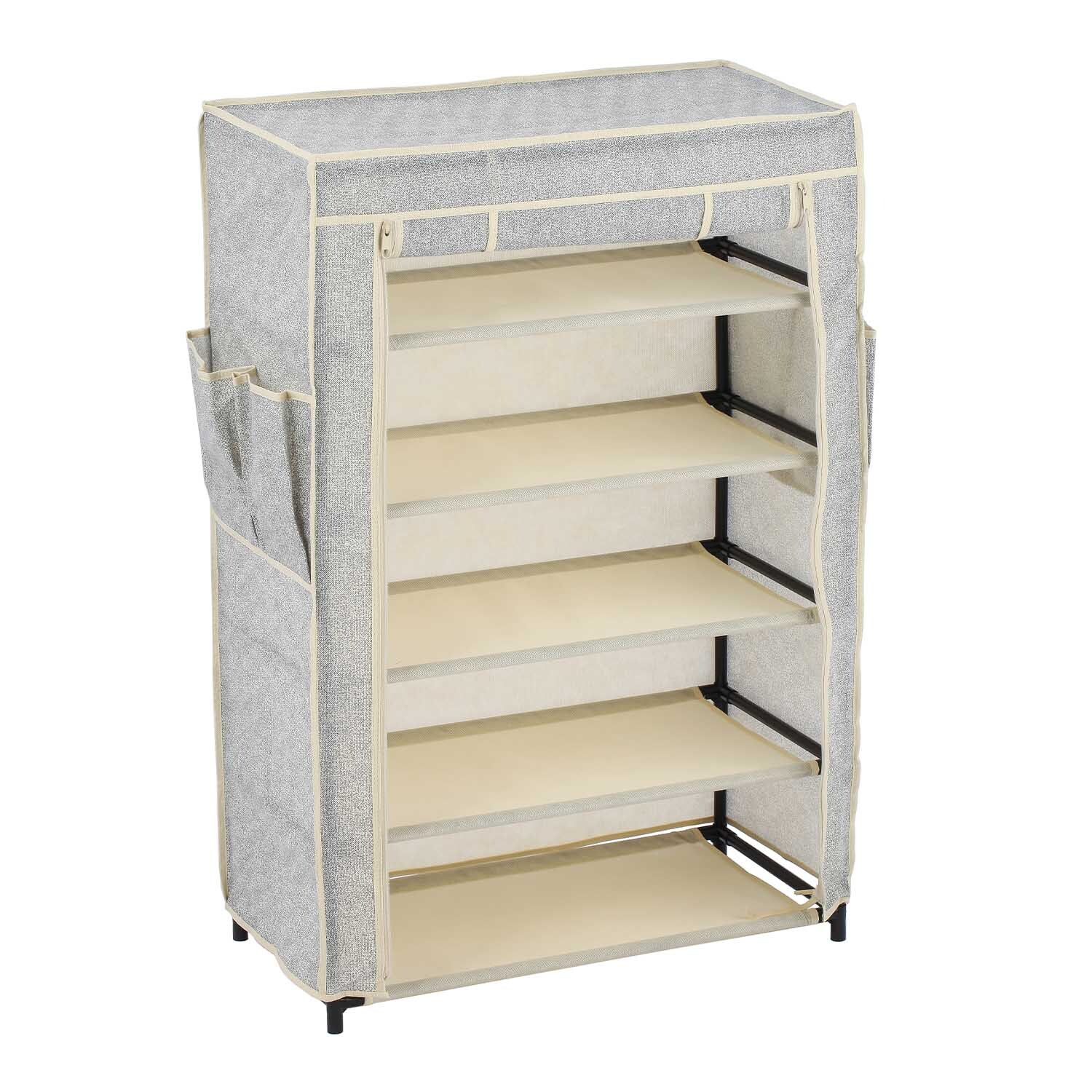 MSV textilní botník, šedý, 5 pater, s kapsami, 60 x 30 x 72 cm