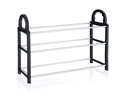 Stojan na boty je praktický pomocník pro ukládání bot. Materiál - chromované trubky a plastové bočnice v černé barvě. Botník lze velmi dobře využít i k vnitřnímu vybavení skříní či šaten.