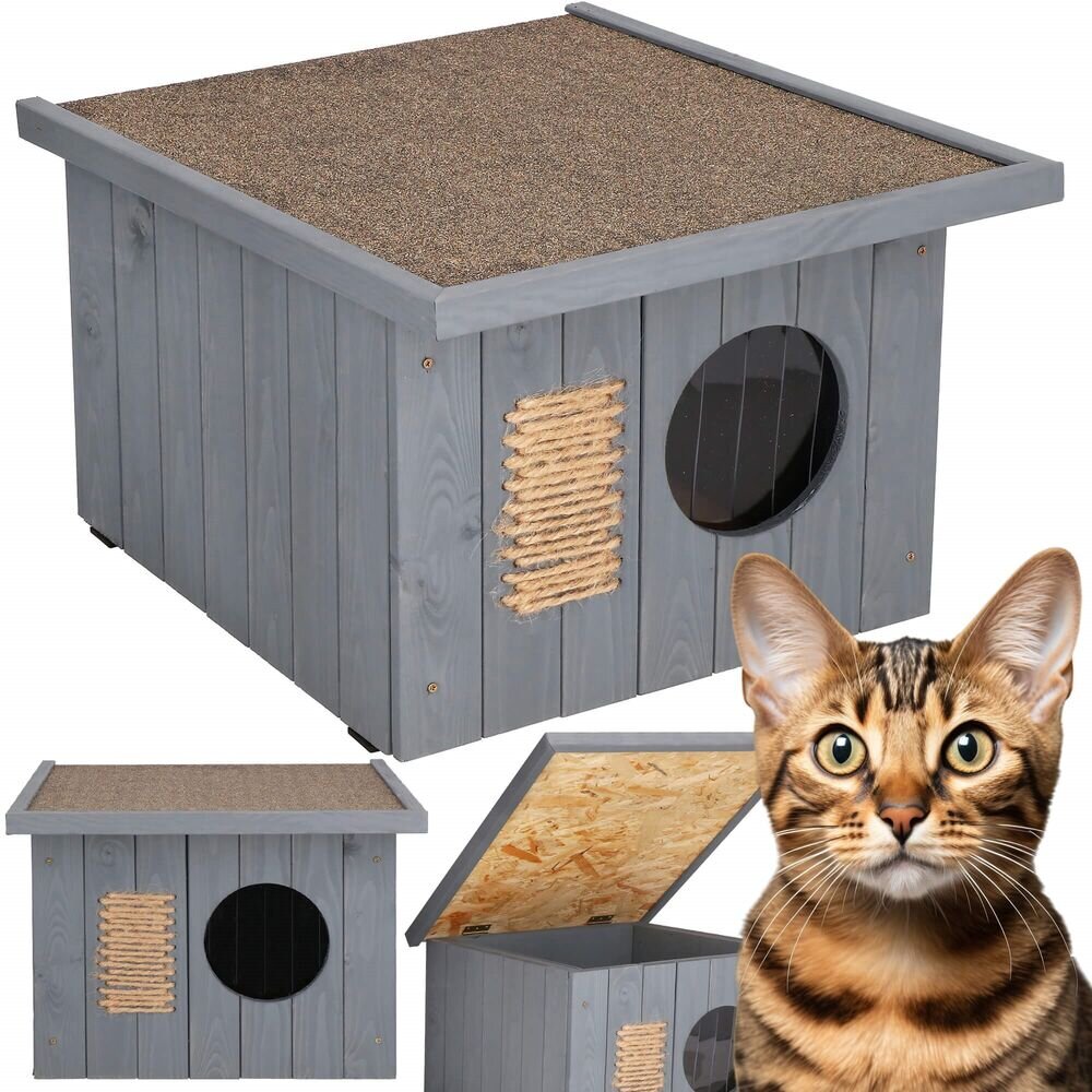 Venkovní domeček bouda pro kočky 58x50x36 cm SPRINGOS ZAPA šedá