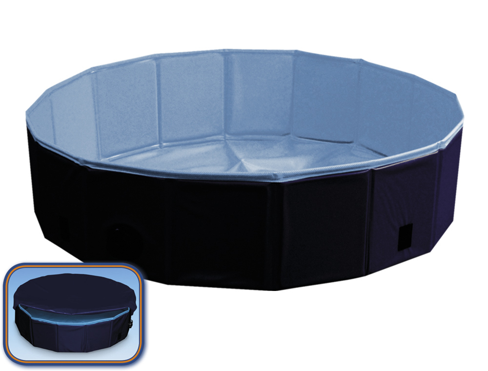 Bazén je je bleskově rozložen i složen. Protiskluzový povrch uvnitř bazénku. Pokud není používán nebo je přepravován je možné jej složit. Silný a odolný povrch. Praktický vypouštěcí ventil. Snadná údržba, stačí otřít. Velikost ø 120 x 30 cm. Tvar bazénu lze změnit na čtyřúhelník/obdélník pro použití na balkónech, terasách. Včetně krytu proti listí a nečistotám. Dopřejte svému psovi vlastní bazén! Bazén je vyrobený z odolného materiálu, má zesílené bočnice a je stabilní i bez vzduchových komor. Takto se můžete ušetřit vzduchového kompresoru a namáhavého nafukování! Brouzdaliště je postavené obratem ruky: Vybalte, postavte na vybrané místo a naplňte osvěžující vodou. Zábava může začít! Bazén je kruhový a má pružné stěny. Po vzrušujícím dni u psího bazénu se dá rychle opět uklidit: Skrz boční ventil rychle vyteče voda a hladký povrch se dá snadno očistit. Ve složeném stavu se dá bazén uschovat na malém místě. Součástí balení je také praktický kryt. Chrání před špínou a padajícím listím, proto může zůstat bazén postavený pro příští zábavné koupání. Upozornění k používání: Ujistěte se, prosím, že Váš pes nemá příliš ostré drápy, mohl by při dovádění v bazénu poškodit dno. Bazén by neměl být naplněn z více než 60 % vodou, aby byl zachován jeho tvar. Ostatní upozornění: Žádná hračka není nezničitelná. Jako s každým jiným produktem, sledujte svého psa při hře s touto hračkou. Kontrolujte, prosím, produkt pravidelně, zda není poškozený a vyměňte ho, pokud najdete vadu nebo chybí některé jeho součásti, v opačném případě nelze vyloučit zranění zvířete.