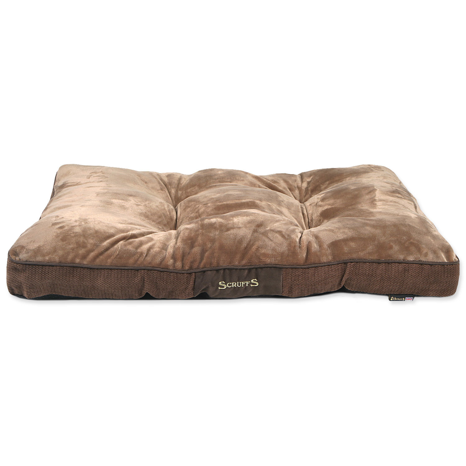 Pelíšek je zdobený semišovým lemem s výšivkou loga Scruffs® uprostřed.