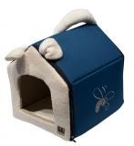 Roztomilá boudička s ušima a ocáskem v originálním designu vhodná do každého interiéru. Domek lze snadno pomocí zipů rozložit a opětovně složit. Uvnitř je polštářek, který je oboustranný - jedna strana látka, druhá imitace kožíšku beránka. Svrchní materiál: 100% polyester, nepromokavý. Spodní materiál: protiskluzová úprava-pokládat na suché povrchy. Výplň: 100% polyuretan. Velikost: 45x45x40cm