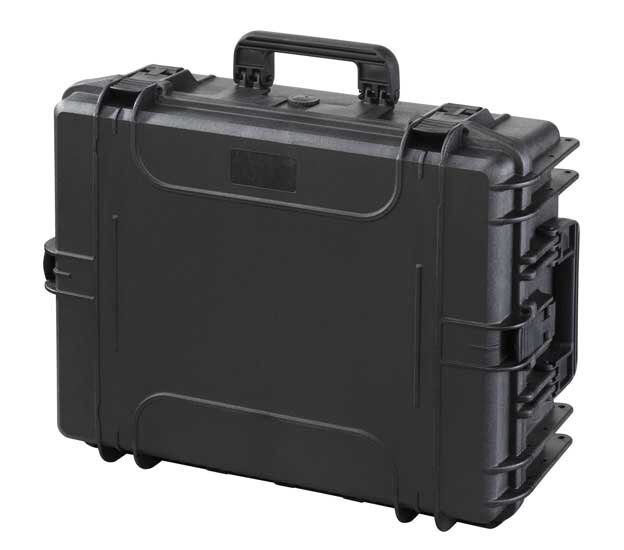 MAX Plastový kufr, 594x473xH 215mm, IP 67, barva černá- vnitřní rozměr 538 x 405 x H 190 mm- odolný proti nepříznivým vlivům (odolný vůči vodě, prachu, proti nárazu) - IP 67 - příklad užití: rybaření, potápění, fotografování, lov a další- vodotěsné těsnění kolem víka- ventil pro automatické uvolnění tlaku- snadno oteviratelné dvojité západky- pogumovaná rukojeť testovaná na zátěž- otvory pro ramenní popruh- množství upevňovacích bodů, úchytek po celé délce - pevný a silný materiál- součástí je čtvercovaná pěna ve spodní části pro individuální úpravu dle vloženého předmětu