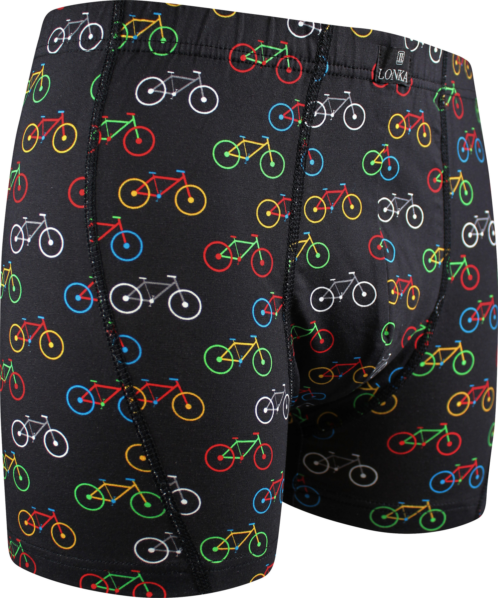 Pánské obrázkové boxerky Lonka® KEVIN BIKE jsou trendy elastické boxerky přiléhavého střihu. Přírodní bavlněný úplet je doplněný o pružný elastan, takže boxerky perfektně padnou. Zadní díl je vcelku a přední část je dvouvrstvá, díly jsou sešité plochými švy pro maximální pohodlí. Guma se nedotýká pokožky, je skrytá v úpletu. Pánské boxerky mají celoplošný tisk s bike motivy, ideální pro milovníky cyklistiky na každodenní nošení.