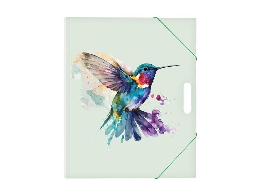 Teczka na rysunki z dobrej jakości tektury powleczonej laminatem. Zagięte rogi wewnątrz teczki pomagają w utrzymaniu rysunku wewnątrz teczki. Teczka posiada gumkę, która zabezpiecza rysunki oraz pomaga w przenoszeniu ich.