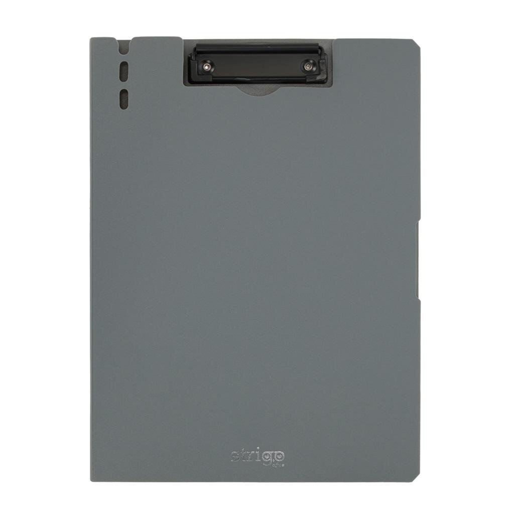 Deska Strigo z górnym klipem. Wykonana z wysokiej jakości materiału. Mocny, metalowy klips do mocowania dokumentów, posiada zacisk sprężynowy. Specjalne wycięcie na przywieszenie długopisu. Format A4. Występuje w 6 kolorach: czarny, granatowy, bordowy, miętowy, błękitny, liliowy