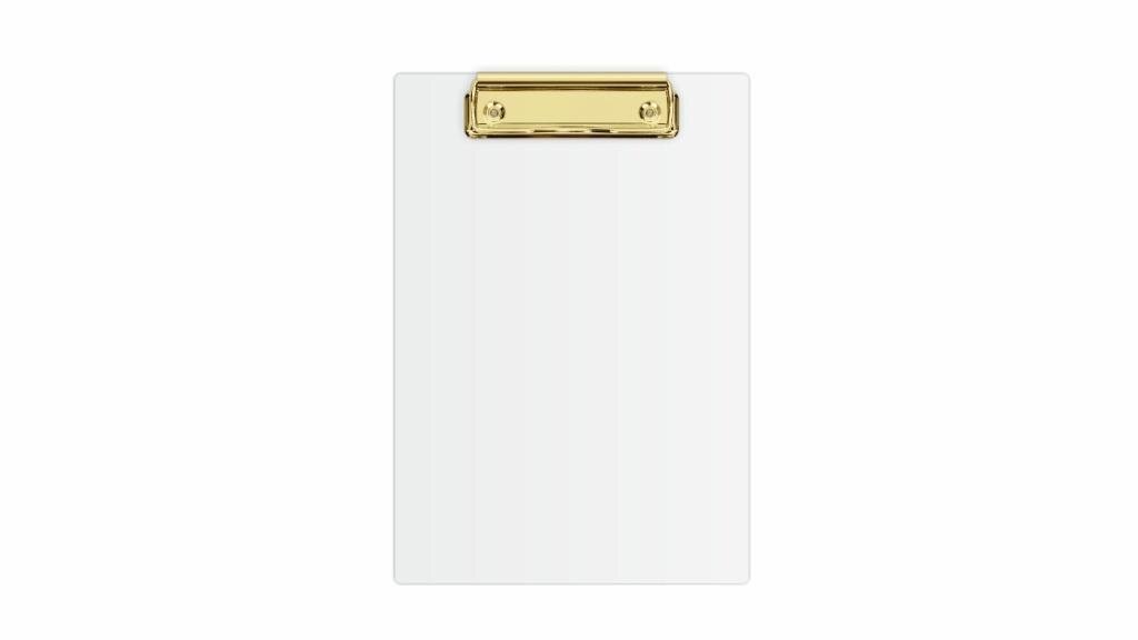 Elegancka podkładka wykonana z białej folii PVC, wewnątrz usztywniona tekturą. Wyposażona w sprężysty mechanizm zaciskowy w kolorze złota, służący do przytrzymywania kartek papieru. Idealnie sprawdza się podczas publicznych wystąpień przy okazji takich uroczystości, jak komunia czy ślub. Dzięki twardej konstrukcji, doskonale spełnia funkcję podkładki do pisania. Format A5.