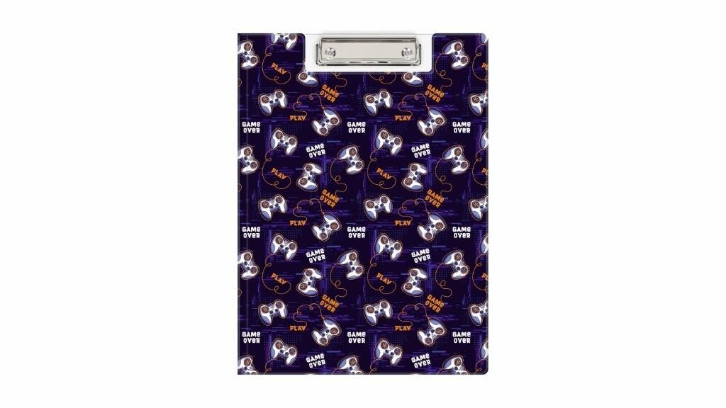 Wykonana z folii PVC z pełnym, ozdobnym nadrukiem, wewnątrz usztywniona tekturą. Wyposażona w sprężysty mechanizm zaciskowy służący do przytrzymywania kartek papieru. Wewnątrz, na całej szerokości, podłużna kieszeń z miejscem na długopis na zgięciu okładek. Wersja zamykana, z okładką. Służy jako sztywna podkładka do pisania, z funkcją teczki, podczas konferencji, spotkań, jak i codziennej pracy. Format A4.