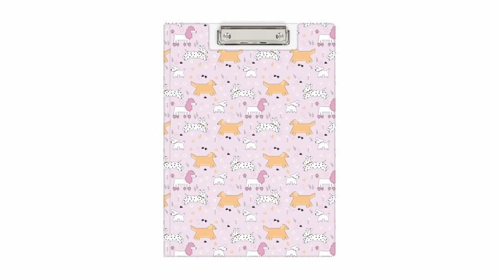 Wykonana z folii PVC z pełnym, ozdobnym nadrukiem, wewnątrz usztywniona tekturą. Wyposażona w sprężysty mechanizm zaciskowy służący do przytrzymywania kartek papieru. Wewnątrz, na całej szerokości, podłużna kieszeń z miejscem na długopis na zgięciu okładek. Wersja zamykana, z okładką. Służy jako sztywna podkładka do pisania, z funkcją teczki, podczas konferencji, spotkań, jak i codziennej pracy. Format A4.