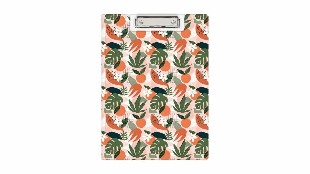 Wykonana z folii PVC z pełnym, ozdobnym nadrukiem, wewnątrz usztywniona tekturą. Wyposażona w sprężysty mechanizm zaciskowy służący do przytrzymywania kartek papieru. Wewnątrz, na całej szerokości, podłużna kieszeń z miejscem na długopis na zgięciu okładek. Wersja zamykana, z okładką. Służy jako sztywna podkładka do pisania, z funkcją teczki, podczas konferencji, spotkań, jak i codziennej pracy. Format A4.