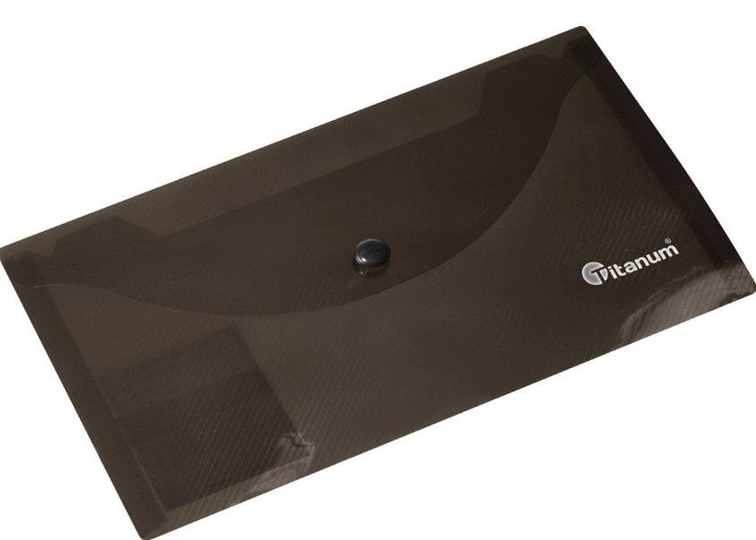 Wykonana z polipropylenowej folii o transparentnej, prążkowanej fakturze, pozioma, zapinana na zatrzask. Format DL, kolor: dymny.
