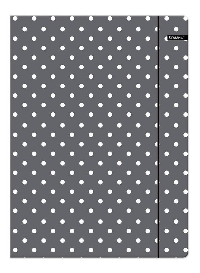 Teczka z gumką w formacie A4, szara w białe kropki. číst celé