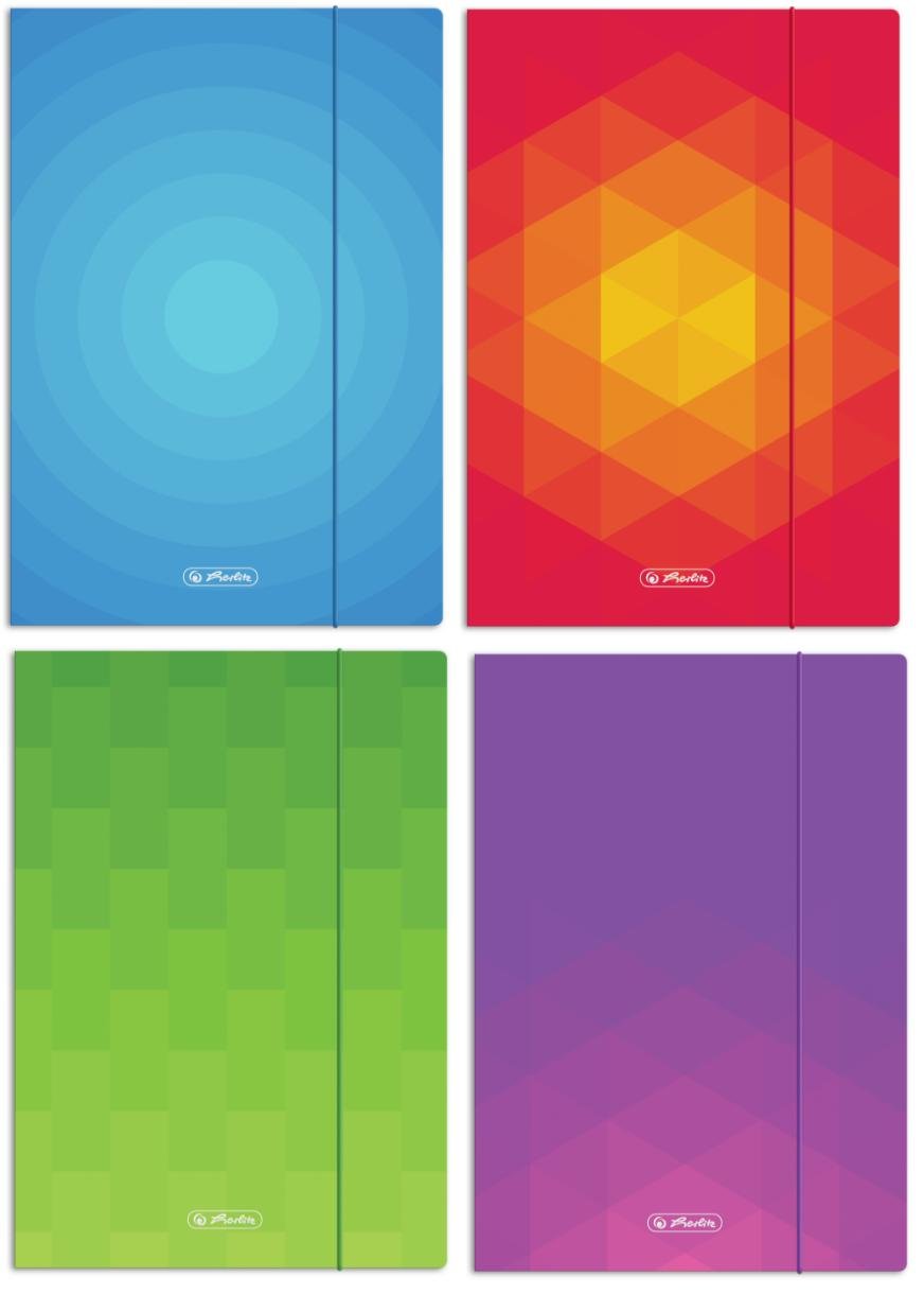 Miękka w dotyku okładka 300g, eleganckie, białe wykończenie w środku, grafika spójna kolorystycznie z zeszytami Herlitz Gentle Touch, trzy wewnętrzne zakładki zabezpieczajace dokumenty przed wypadaniem, elastyczna gumka zapewniajaca pewne zamknięcie teczki.Mix wzorów - towar wysyłany losowo.