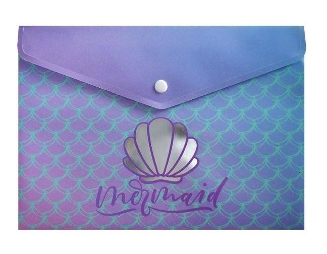 Teczka w formacie A5 holograficzna z napisem Mermaid oraz muszlą. Zapinana na zatrzask. číst celé