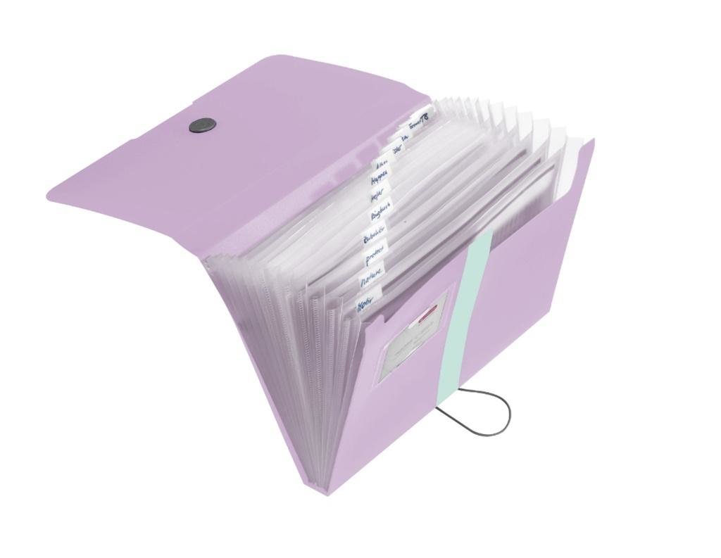 Teczka rozkładana z przegródkami, poręczny instrument do tematycznego sortowania dokumentów, regulowana zewnętrzna pokrywa, zapewnia optymalne rozmieszczenie do 300 kartek. Wewnętrzna kieszonka z etykietą w formacie wizytówek, posiada 12 przegródek oraz przekładki do opisywania i 24 etykiety. číst celé