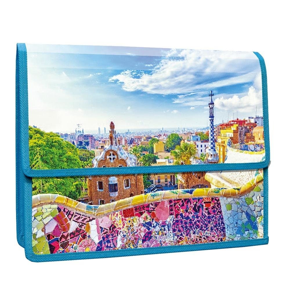 Wykonana z nadrukowanego mocnego PP o grubości 500 mic, obszyta lamówką, zapinana na rzep. Posiada 2 rozszerzane materiałowe kieszenie. Wymiary 33x23,5x10cm. číst celé