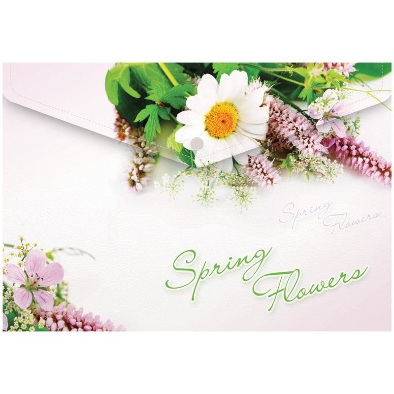 Teczka kopertowa z zamknięciem, seria Berlingo Spring flowers A4 do przechowywania i przenoszenia dokumentów. Wykonana z wysokiej jakości polipropylenu 180 mikronów o matowej fakturze skórki pomarańczy, wolnej od odcisków palców i drobnych zadrapań. Rozmiar teczki to 330*235 mm, orientacja jest pozioma. Pojemność teczki- 120 arkuszy A-4. Teczka jest szczelnie zamykana na fioletowy guzik typu klip, chroniący dokumenty przed uszkodzeniem i zabrudzeniem.