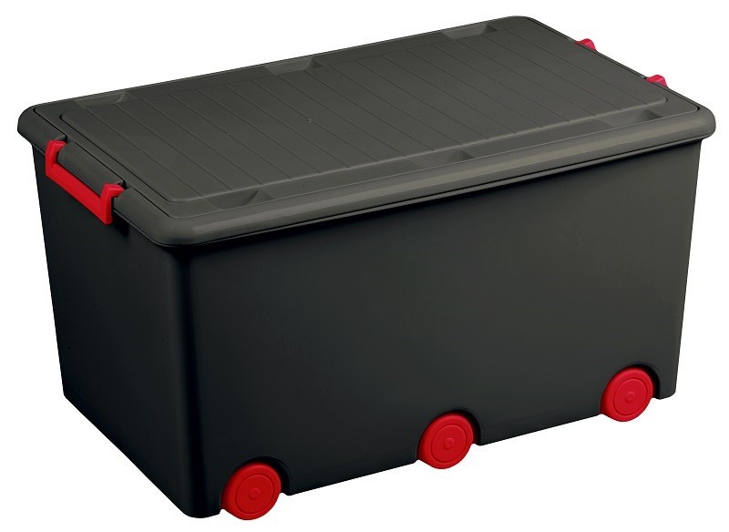 Víceúčelový box na hračky na kolečkách Tega grafitovo-červený