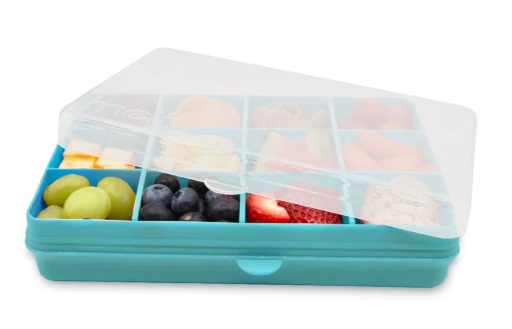 - Praktické uspořádání: 12 samostatných přihrádek zabraňuje míchání chutí a pomačkání svačin.