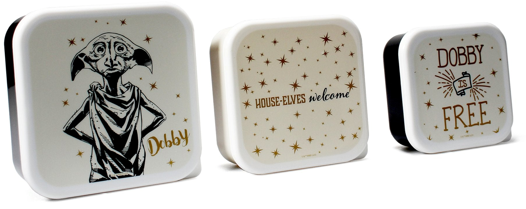 Uchovávejte svou svačinu, oběd či večeři v těchto boxech s grafikou domácího skřítka Dobbyho, které udrží vaši svačinu ochráněnou před všemi možnými kouzly.