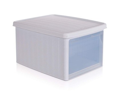 Multifunkční box s víkem RATTAN Elegance Line o objemu 15 l, v bílé barvě, má praktická průhledná přední dvířka, víko boxu je odnímatelné. Rozměry: 29 x 39 x 21 cm. číst celé
