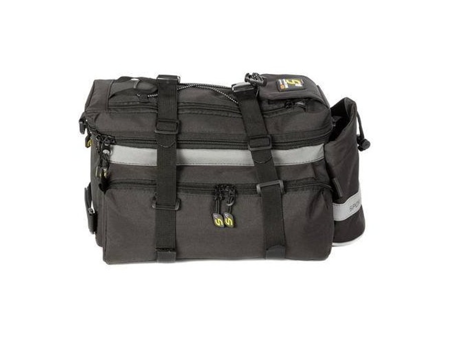 Tato víceúčelová brašna nabízí flexibilitu díky možnosti zvětšení objemu rozepnutím horního zipu. Připevnění k nosiči je řešeno spolehlivě suchými zipy a stabilitu nákladu zajišťují dva stahovací popruhy vnitřku brašny. Polstrované boky chrání obsah před nárazy a zároveň dodávají celkové konstrukci pevnost. Velká vnitřní kapsa a čtyři vnější kapsy na zip poskytnou dostatek místa pro uspořádání všech vašich věcí, od nářadí přes dokumenty až po drobnosti.