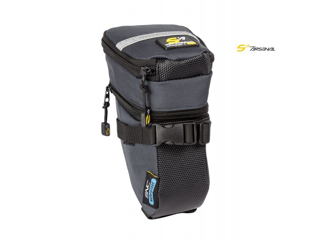 brašna se připevňuje pod sedlo pomocí textilního pásku s plastovou sponou