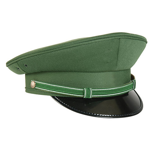 Čepice tzv. Brigadýrka německé policie. Zelené provedení. Růné velikosti a barvy pásků. Do poznámky na konci objednávky napište požadovanou velikost.