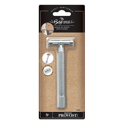 Chromovaná bezpečnostní břitva kolekce Barb\'xpert od značky Franck Provost slouží pro tradiční holení, bez rizika poranění. Díky své hmotnosti 75 g a dlouhé rukojeti poskytuje dobrý úchop, který je vhodný jak pro profesionály, tak pro začátečníky.