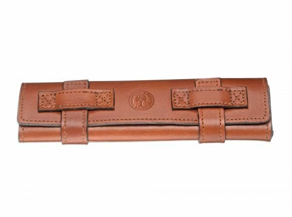 Klasické Roll-up puzdro Böker Manufaktur Rolletui vyrobené z pravej kože ponúka dokonalú ochranu pri cestovaní s vysoko kvalitnými britvami. Puzdro sa dá bezpečne uzavrieť dvoma paralelnými koženými remienkami a poskytuje dostatok priestoru pre všetky Straight Razors britvy v obvyklých veľkostiach medzi 4/8 "a 7/8".