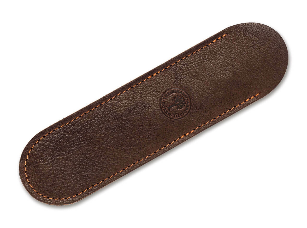 Tmavohnedé kožené puzdro Böker Manufaktur Solingen Leather Wallet Dark Brown je ideálne na prepravu všetkých holiacich strojčekov Boker vo veľkostiach od 4/8 do 7/8 palca. Zdobí ho vyrazené logo Boker.